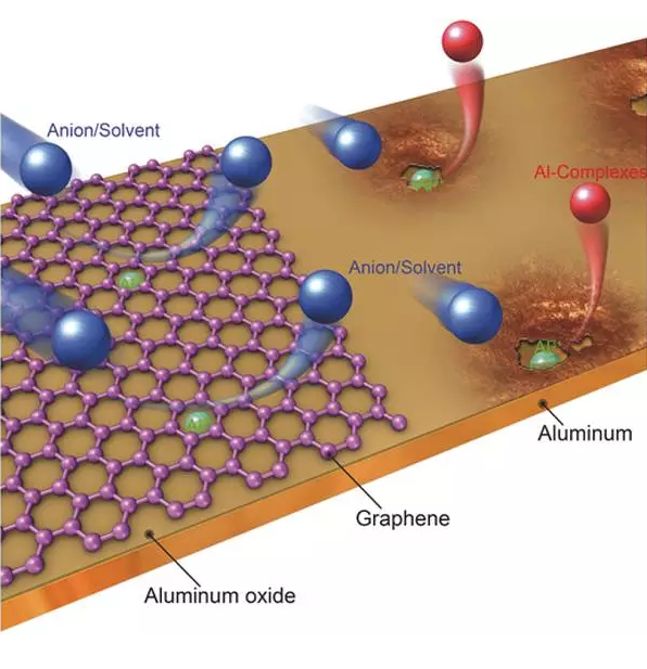 圖1.石墨烯包覆鋁箔集流體的抗電化學(xué)腐蝕的示意圖