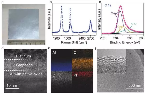 圖2. 通過PECVD法制備石墨烯包覆鋁箔的合成與表征
