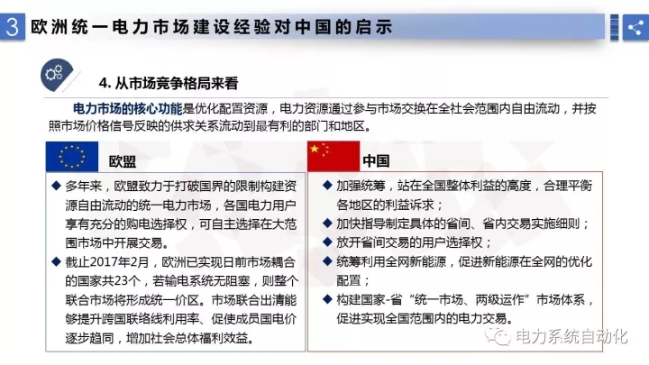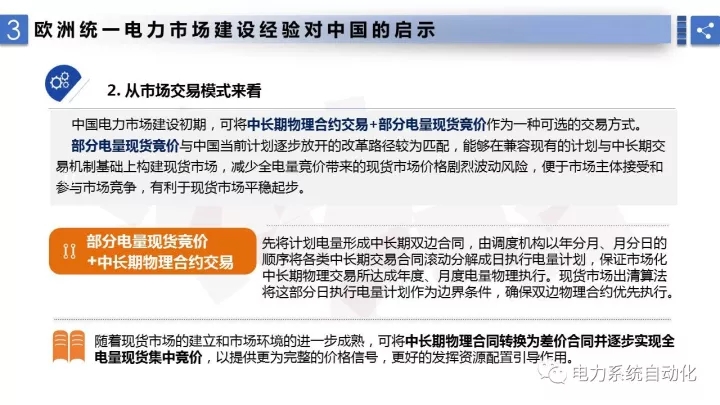 中國(guó)儲(chǔ)能網(wǎng)訊:2017年10月29日,“紫金論電—我國(guó)電力市場(chǎng)建設(shè)模式、路徑及實(shí)踐研討會(huì)”在南京召開,北京電力交易中心市場(chǎng)部主任龐博在會(huì)上作了題為“歐洲統(tǒng)一電力市場(chǎng)建設(shè)及對(duì)中國(guó)電力市場(chǎng)模式的啟示”的主旨報(bào)告。報(bào)告全面介紹了歐洲統(tǒng)一電力市場(chǎng)建設(shè)背景及最新進(jìn)展,提出了在市場(chǎng)架構(gòu)、交易模式、交易品種以及市場(chǎng)競(jìng)爭(zhēng)格局等方面對(duì)中國(guó)電力市場(chǎng)模式的啟示。小編征得專家同意,在此分享報(bào)告PPT,歡迎品讀。