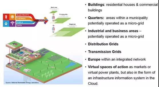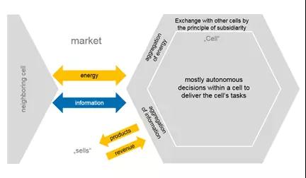 一個“細胞結(jié)構(gòu)”的基本功能是為位于其中的用戶供應(yīng)能源,將來還需要進一步開發(fā)供能系統(tǒng)的靈活性。而多能互補(電,熱,交通等)可以實現(xiàn)一個細胞結(jié)構(gòu)內(nèi)的整體優(yōu)化。該細胞結(jié)構(gòu)可以通過分布式能源、生產(chǎn)者與消費者之間的互動,應(yīng)對電網(wǎng)日益增長的復(fù)雜性。能源流和IT設(shè)施將不同基礎(chǔ)元素連接起來,保證信息和能源的安全流動互通。