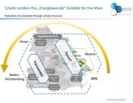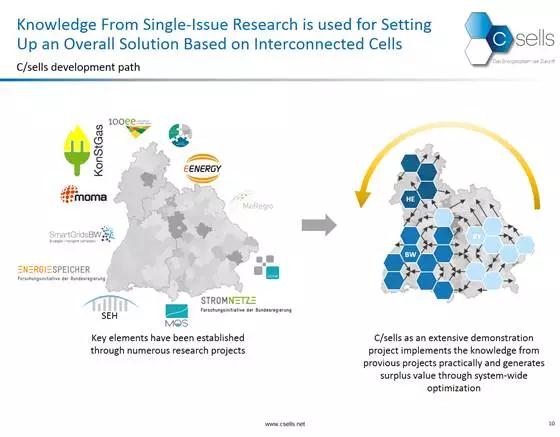 “C-sells”隸屬于在2016年12月正式啟動的SINTEG項目(Smart Energy Showcases – Digital Agenda for the Energy Transition),是德國繼E-ENERGY六個示范項目后在能源互聯(lián)網(wǎng)方面的進一步探索。E-Energy是2008年德國聯(lián)邦經(jīng)濟與能源部在智能電網(wǎng)的基礎(chǔ)上推出的一個為期4年的技術(shù)創(chuàng)新促進計劃。它提出打造新型能源網(wǎng)絡(luò),在整個能源供應(yīng)體系中實現(xiàn)綜合數(shù)字化互聯(lián)以及計算機控制和監(jiān)測的目標。E-Energy充分利用信息和通信技術(shù)開發(fā)新的解決方案,以滿足未來以分布式能源供應(yīng)結(jié)構(gòu)為特點的電力系統(tǒng)的需求。