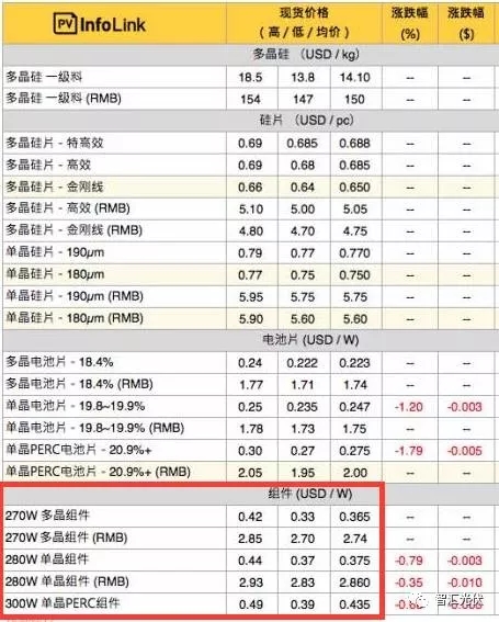 上述270W多晶組件和285W單晶組件的價(jià)格,比PVinfolink本周調(diào)研光伏組件現(xiàn)價(jià)結(jié)果低3~4分錢(如下圖)??梢?jiàn),各家的報(bào)價(jià)基本按照現(xiàn)價(jià)來(lái)報(bào),并未出現(xiàn)大幅跳水。
