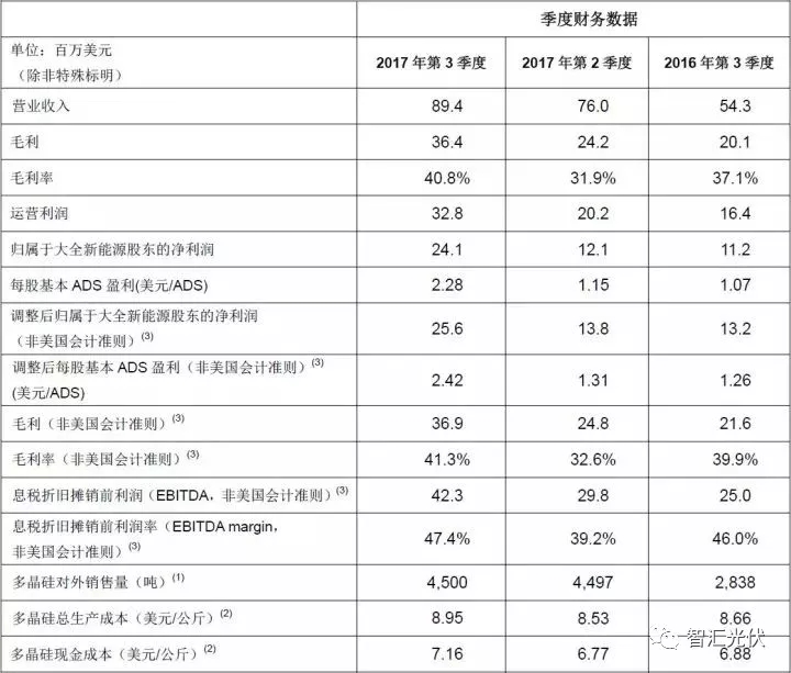 2017年第3季度多晶硅平均現(xiàn)金成本為7.16美元/公斤,2017年第2季度為6.77美元/公斤;