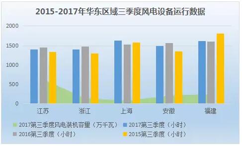 中電傳媒電力傳媒數(shù)據(jù)研發(fā)中心分析顯示,華東區(qū)域位于電力負(fù)荷中心區(qū),電網(wǎng)支撐條件較好,具有較強(qiáng)的消納能力,但與2015年三季度、2016年三季度相比,風(fēng)電設(shè)備利用小時(shí)數(shù)有所下滑,風(fēng)電消納壓力依然存在。值得關(guān)注的是,華東區(qū)域海上風(fēng)電項(xiàng)目的積極推進(jìn),預(yù)計(jì)風(fēng)電裝機(jī)容量還將會(huì)有所提高。