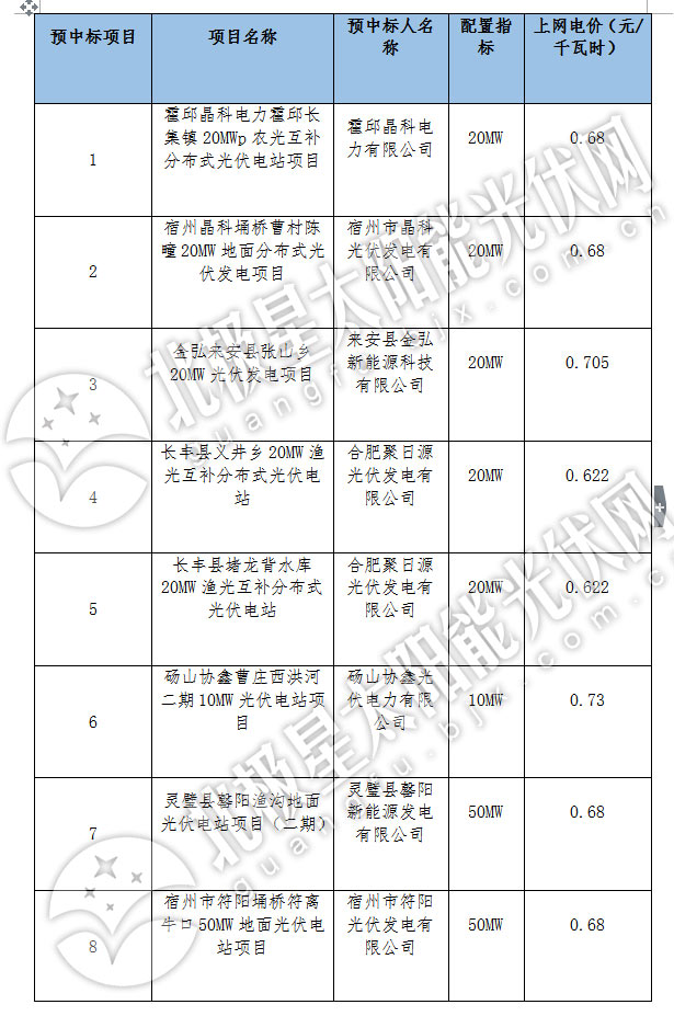 中國儲能網(wǎng)訊:日前,安徽合肥公共資源交易中心公布安徽省2017年集中式光伏電站新增建設(shè)規(guī)模配置項目中標(biāo)(成交)公告中標(biāo)公告。