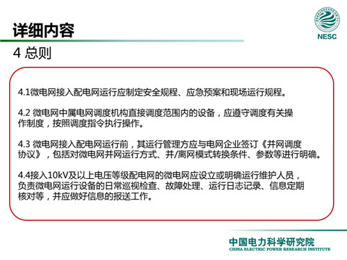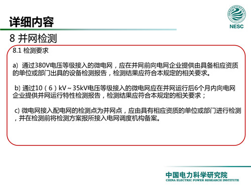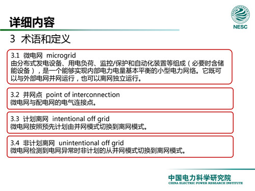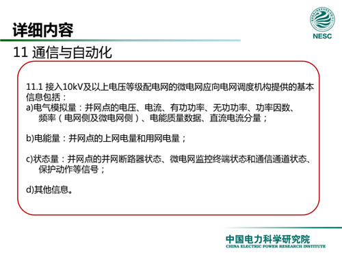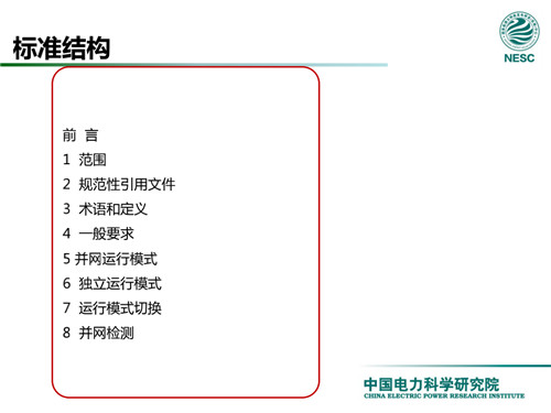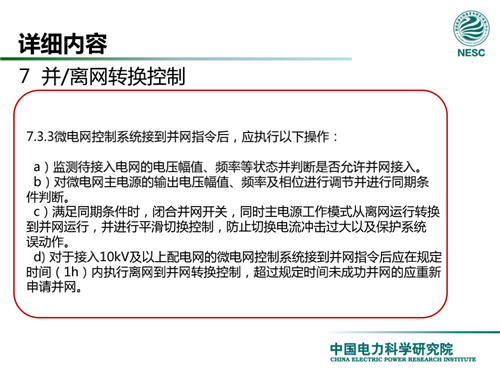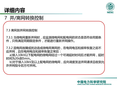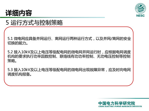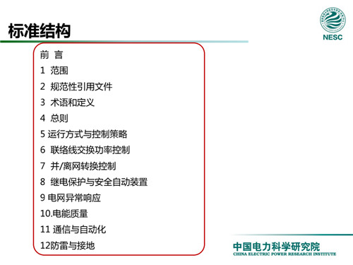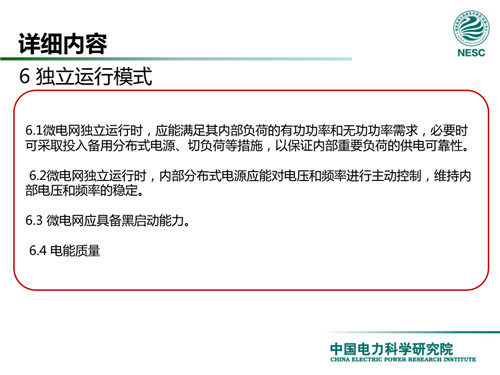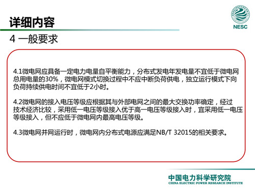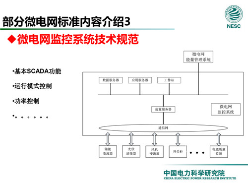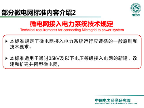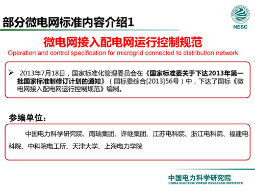 2013年7月18日,國家標(biāo)準(zhǔn)化管理委員會在《國家標(biāo)準(zhǔn)委關(guān)于下達2013年第一批國家標(biāo)準(zhǔn)制修訂計劃的通知》(國標(biāo)委綜合[2013]56號)中,下達了國標(biāo)《微電網(wǎng)接入配電網(wǎng)運行控制規(guī)范》編制。該標(biāo)準(zhǔn)規(guī)定了微電網(wǎng)接入配電網(wǎng)運行控制應(yīng)遵循的規(guī)范和要求。包括微電網(wǎng)的運行方式不控制策略、聯(lián)絡(luò)線交換功率控制、并/離網(wǎng)轉(zhuǎn)換控制、繼電保護不安全自動裝置、電網(wǎng)異常響應(yīng)、電能質(zhì)量、通信與自動化等。適用于接入35kV及以下電壓等級配電網(wǎng)的微電網(wǎng)系統(tǒng)。