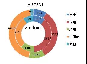 圖1 截至2017年10月底我國分類型新增裝機情況