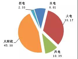 1-10月,全國僅新增太陽能裝機比重增加。其中,新增水電占新增總裝機的8.95%,較上年同期下降1.93個百分點;新增火電裝機比重達33.3%,較上年同期下降5.2個百分點;新增核電裝機比重2.18%,較上年同期下降6.9個百分點;新增風電占10.7%,較上年同期下降1.85個百分點;新增太陽能發(fā)電裝機占44.9%,較上年同期增加15.8個百分點。