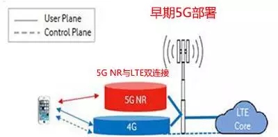 NSA非獨(dú)立部署,即利用現(xiàn)有的LTE 無(wú)線接入網(wǎng)和核心網(wǎng)新增5G 新無(wú)線,采用與LTE雙連接的部署方式。