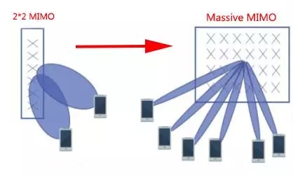Massive MIMO是指在基站部署相當(dāng)數(shù)量的天線單元(64,128,256根天線或更多),這些天線單元集成在一定尺寸的天線面板里,由于相鄰天線單元間距為半個(gè)波長(zhǎng),頻率越低(波長(zhǎng)越大),天線單元數(shù)目越多,天線面板的面積越大。