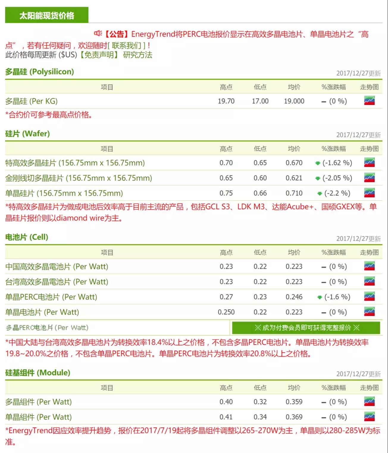 雖然單晶產(chǎn)品的需求開(kāi)始有了起色,但為了在明年第一季拉高單晶產(chǎn)品的競(jìng)爭(zhēng)力,單晶硅片的龍頭廠(chǎng)主動(dòng)調(diào)降單晶硅片價(jià)格RMB 0.2/pc至RMB 5.3-5.4/pc,美元價(jià)格則為USD 0.71-0.72/pc,帶動(dòng)其他單晶硅片廠(chǎng)也調(diào)低報(bào)價(jià)。然而,由于之前單晶市況不佳,市場(chǎng)成交價(jià)與報(bào)價(jià)原就有脫勾,因此本次價(jià)格調(diào)降實(shí)際影響低于RMB 0.12/pc。