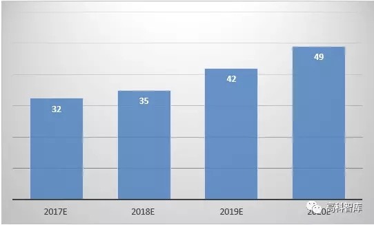 2017-2020年中國城鄉(xiāng)房屋建筑面積預(yù)測(單位:億平方米),資料來源:OFweek行業(yè)研究中心