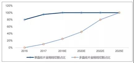 未來金剛線切割市場占有率預(yù)期:單晶目前為主流,多晶市場空間逐步釋放