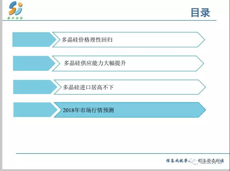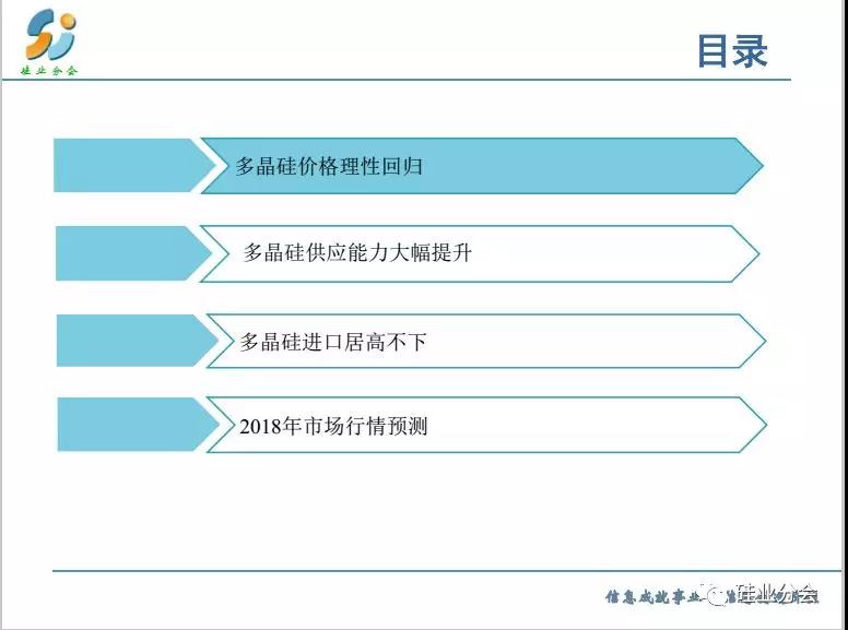預(yù)測2018全年基本上供需平衡,特別是上半年,而下半年出現(xiàn)供大于求的失衡狀態(tài)。但是產(chǎn)品呈現(xiàn)分化,單晶硅料緊張,產(chǎn)品價格出現(xiàn)明顯差距。
