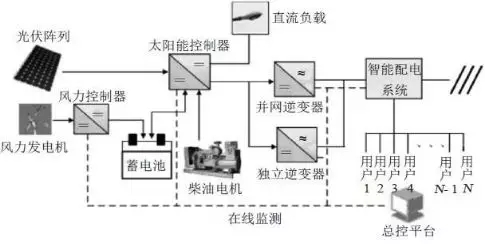 智能微網(wǎng)系統(tǒng)采用多種新型能源供電,是新型電力電子技術(shù)、分布式發(fā)電、可再生能源發(fā)電技術(shù)和儲能技術(shù)的綜合,集成多個分布式發(fā)電單元和負(fù)荷作為一個單獨(dú)的電網(wǎng)系統(tǒng),可獨(dú)立向負(fù)載供電或與市電配合向負(fù)載供電。
