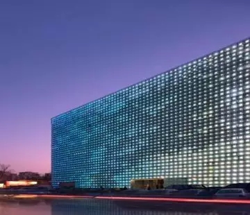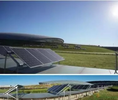 LED或者廣告牌的效果,西面的墻壁也采用同樣的方式,雖然發(fā)電量會有所降低,但是總的來說,外墻薄膜加上屋頂光伏產(chǎn)生的能源量還是非常大的。
