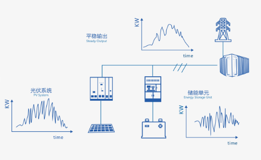 針對(duì)風(fēng)能或太陽能發(fā)電不規(guī)則、斷續(xù)輸出特點(diǎn),特隆美專門設(shè)計(jì)了配套的儲(chǔ)能系統(tǒng),可平滑風(fēng)力及光伏發(fā)電輸出,不僅能確保電網(wǎng)安全穩(wěn)定工作,還可提高能源利用率。該方案優(yōu)勢(shì)有:減少棄光、棄風(fēng),提高經(jīng)濟(jì)性;減少瞬時(shí)功率變化率,減少對(duì)電網(wǎng)的沖擊;跟蹤計(jì)劃調(diào)度,提高并網(wǎng)可控性;提高發(fā)電預(yù)測(cè)精度,提高并網(wǎng)友好性;自主開發(fā)的電池監(jiān)控和系統(tǒng)監(jiān)控軟件,可在無人值守情況下自主運(yùn)行等。