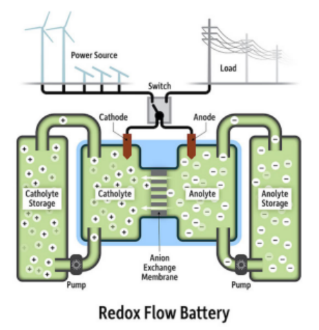 這種被稱為氧化還原液流電池的技術的關鍵是尋找不僅能“攜帶”足夠的電荷,而且能長期儲存而不會降解的化學物質,從而最大限度地儲能和發(fā)電,并最大限度地降低系統(tǒng)的充電成本。