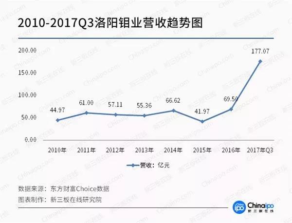 洛陽(yáng)鉬業(yè)的財(cái)報(bào)數(shù)據(jù)顯示,2010年洛陽(yáng)鉬業(yè)全年?duì)I收約44.97億元,而截至2017年三季度洛陽(yáng)鉬業(yè)的營(yíng)收已經(jīng)達(dá)到177億元,2017全年突破220億元應(yīng)無懸念??瓷先?年?duì)I收增長(zhǎng)近4倍,成績(jī)相當(dāng)優(yōu)秀,但仔細(xì)扒開研究,就能發(fā)現(xiàn)業(yè)績(jī)真正的拐點(diǎn)是在今年年初,影響業(yè)績(jī)大幅提升一方面來自于收購(gòu)剛果金的鈷礦,另一方面與鈷價(jià)爆發(fā)也有直接的關(guān)系。所以雙因素的推動(dòng)下,我們看到,2017年的業(yè)績(jī)翻倍上漲。