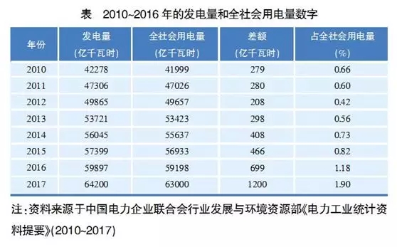 2010年~2017年的發(fā)電量和全社會用電量數(shù)字如下表: