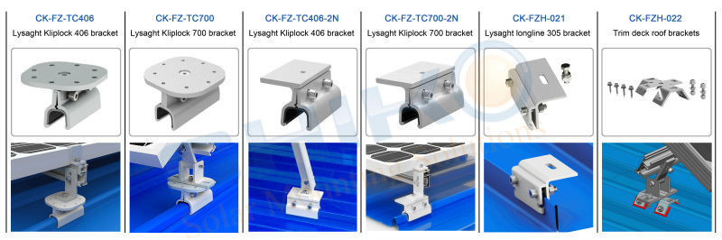 晨科太陽能擁有一支集鈑金設(shè)計(jì)、結(jié)構(gòu)設(shè)計(jì)、土木工程為一體的綜合研發(fā)隊(duì)伍,能夠根據(jù)實(shí)際施工要求,提出最為實(shí)用性價(jià)比最好的解決方案。傾斜光伏支架系統(tǒng)使用不同類型的彩鋼瓦夾具與屋面獨(dú)特的連接設(shè)計(jì),使安裝方便快捷;且不同彩鋼瓦屋面結(jié)構(gòu)對(duì)應(yīng)不同的夾具,夾具與彩鋼瓦匹配越佳支架安裝越牢固。從這點(diǎn)也體現(xiàn)了該款傾斜支架的靈活性和通用性。