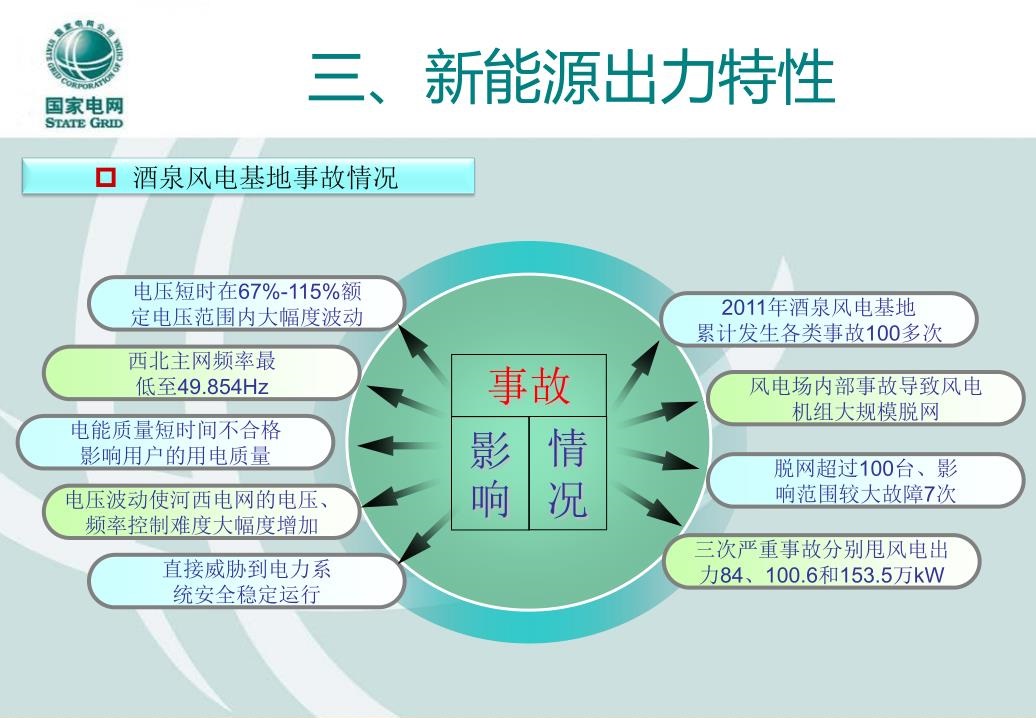 這個圖是750千伏匯集站的變化,如果那是一個小的點的話,這個已經(jīng)影響到面了。九泉地方絕大部分風(fēng)光電都匯集到750千伏。隨著事故狀態(tài)下的劇烈變化,會導(dǎo)致電壓和頻率的巨大變化,這種巨大的變化對電力系統(tǒng)的調(diào)頻需求是顯而易見的,甚至是比我們常規(guī)運行的隨機波動的調(diào)頻需求更加迫切,而且,對頻率響應(yīng)的速度也有特殊的要求。