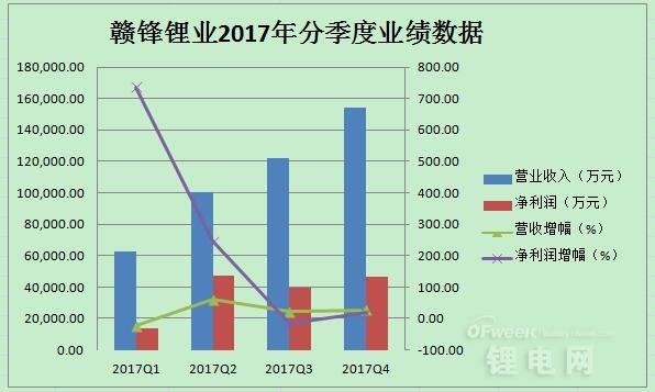 近日,贛鋒鋰業(yè)公布最新財報數(shù)據(jù)顯示,2017年實現(xiàn)營業(yè)總收入為438,344.61萬元,較上年同比增長54.12%,實現(xiàn)歸屬于上市公司股東的凈利潤為146,907.81萬元,較上年同比增長216.36%,公司總資產(chǎn)由2016年的38.09億元增加至2017年的80億元,增長率為110.02%;凈資產(chǎn)由2016年的24.88億元增加至2017年的40.37億元,增長率為62.25%。