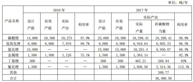 贛鋒鋰業(yè)2017年的生產(chǎn)線始終保持較高的產(chǎn)能利用率,其中,碳酸鋰?yán)寐蔬_(dá)98%,氫氧化鋰?yán)寐蔬_(dá)86.5%、氯化鋰?yán)寐蔬_(dá)68.5%、金屬鋰?yán)寐蔬_(dá)92.3%、丁基鋰?yán)寐蔬_(dá)93%、氟化鋰?yán)寐蔬_(dá)113.1%。