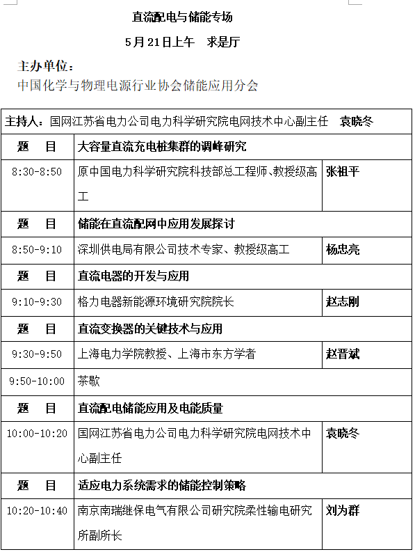 大會將分別設(shè)置儲能產(chǎn)業(yè)政策解讀、儲能電站、新能源并網(wǎng)、微電網(wǎng)、能源互聯(lián)網(wǎng)+多能互補(bǔ)、國際儲能、分布式光伏與儲能系統(tǒng)、儲能電池、通信儲能、氫能與燃料電池、直流配電與儲能、光儲充電站、投融資等13個(gè)專場論壇。以下為直流配電與儲能專場大會議程表。