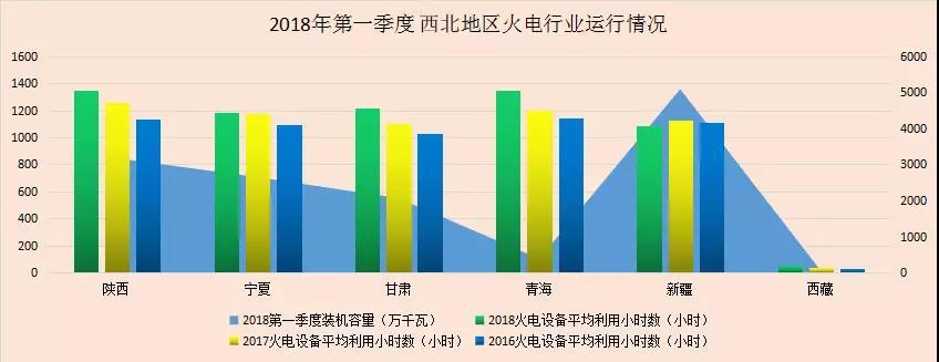 西北地區(qū)是我國火電重要的集中區(qū)域之一,相對東部、南方煤電大省而言,火電裝機(jī)容量相對較低。截至2018年第一季度,西北區(qū)域超過3000萬千瓦的省份僅有新疆、陜西,分別達(dá)到5086萬千瓦、3167萬千瓦。而青海、西藏相對較低,僅為378萬千瓦、41萬千瓦。