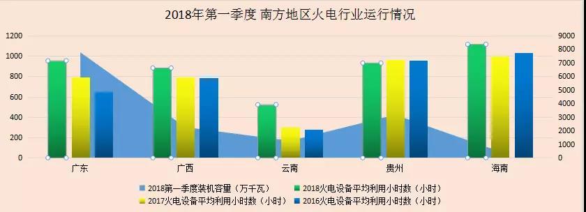 南方地區(qū)是我國火電裝機(jī)相對較低。截至2018年第一季度,南方五省僅廣東省超過6000萬千瓦,達(dá)到7767萬千瓦。廣西、貴州、云南、海南裝機(jī)之和僅為6950萬千瓦,不及廣東一省。