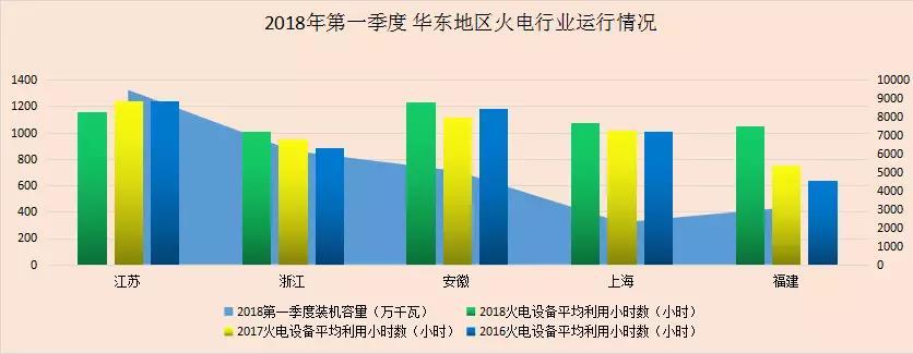 從火電設(shè)備平均利用小時數(shù)上看,華東地區(qū)總體水平相對較高,安徽、江蘇超過全國平均水平,達(dá)到1234小時、1161小時,其中浙江省相對較低,僅為1006小時。