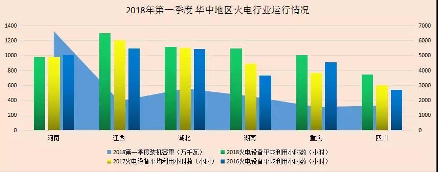 受到資源稟賦限制,華中地區(qū)火電裝機(jī)容量相對較低。截至2018年第一季度,華中區(qū)域火電裝機(jī)容量超過6000萬千瓦的省份僅河南一省,達(dá)到6617萬千瓦,其余省份火電裝機(jī)容量相對較低,江西、湖北、湖南、四川、重慶之和僅相當(dāng)于一個山東省的火電裝機(jī)容量。從火電裝機(jī)容量增長情況上看,華中地區(qū)已經(jīng)全面放緩,僅河南省同比增長189萬千瓦,其余省份基本保持去年同期水平。