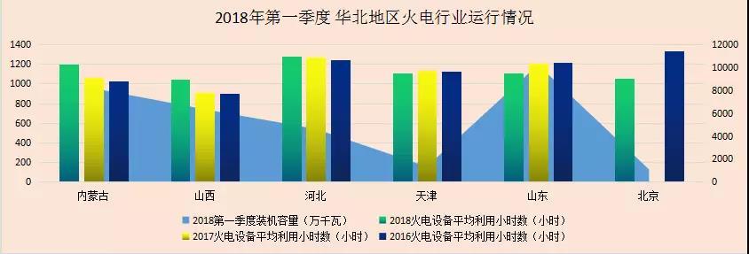 2018年第一季度,華北地區(qū)火電設(shè)備平均利用小時數(shù)有明顯上升,但是各省差距較為明顯,其中河北省最高,達(dá)到1282小時,山西最低,僅為1048小時。值得關(guān)注的是,去年迎峰度冬以來,北京緊急啟動燃煤機(jī)組,2018年第一季度也保持了較高的設(shè)備平均利用小時數(shù),也達(dá)到1056小時。另外,山東、天津火電設(shè)備平均利用小時數(shù)出現(xiàn)了一定幅度的下滑,同比下滑幅度分別達(dá)到29小時、100小時。