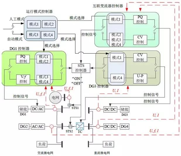 本文以主從控制結(jié)構(gòu)的交直流混合微電網(wǎng)為例,對(duì)多種運(yùn)行方式之間的切換控制策略進(jìn)行研究。本文的主要貢獻(xiàn)如下: