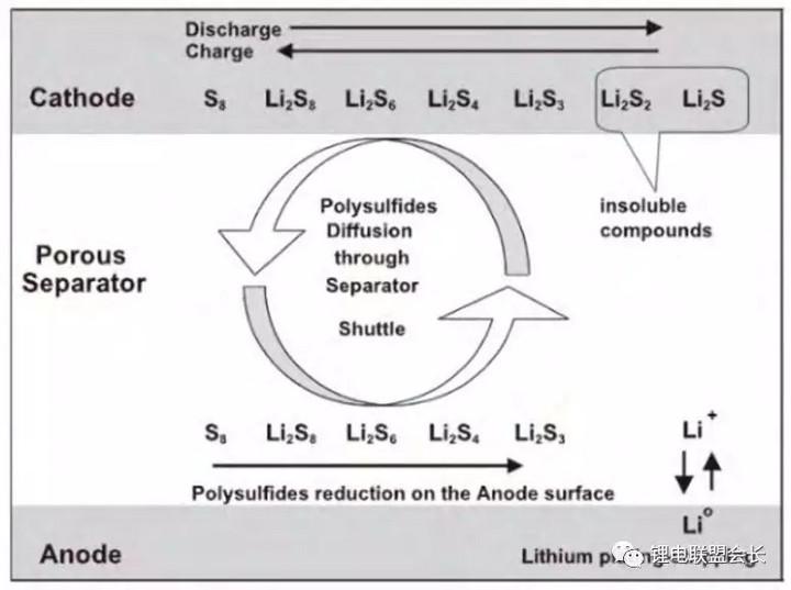 (4)金屬鋰負(fù)極:由于硫本身不含鋰原子,所以必須使用金屬鋰單質(zhì)作為負(fù)極材料,但這樣一來(lái)就不可避免會(huì)產(chǎn)生鋰金屬的枝晶問(wèn)題,帶來(lái)安全隱患。