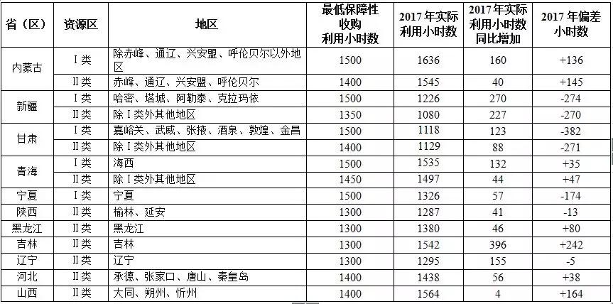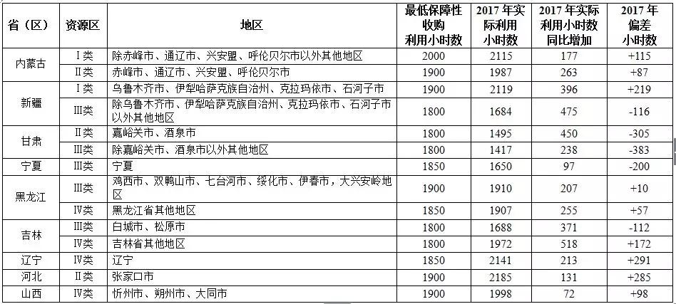 新疆Ⅲ類資源區(qū)、甘肅、寧夏、吉林Ⅲ類資源區(qū)未達(dá)到風(fēng)電最低保障收購(gòu)年利用小時(shí)數(shù)要求。