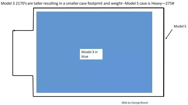 從數(shù)據(jù)上就一目了然,Model 3 電芯數(shù)量少于 Model S 85D,這也使 Model 3 電池包占用空間更小。而且重量更輕。