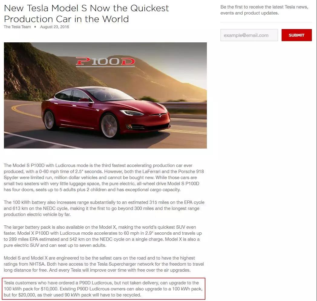 (插個彩蛋:因為體積規(guī)格沒變,所以特斯拉還面向 90D 車主推出了更換電池組升級續(xù)航的服務(wù),不過價格高達 20000 美元(回收舊電池組),不知道有多少車主進行了升級。)