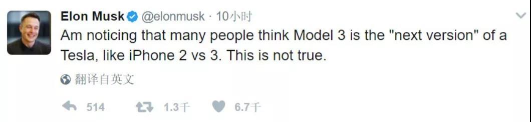 去年的時候,Elon 在 Twitter 裝模做樣的說,「我注意到很多人以為Model 3 是特斯拉的下一代車型,就像 iPhone 2 和 3 一樣,不是這樣的」。