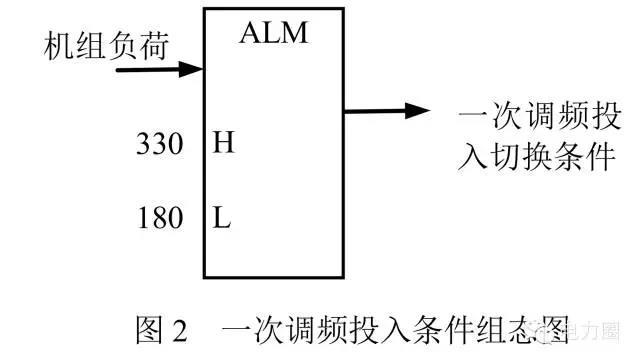 該投入范圍功能塊邏輯組態(tài),利用 ALM 功能塊,當(dāng)輸入機組負(fù)荷超出設(shè)定高低限時,輸出值為 0,一次調(diào)頻投入條件自動切除調(diào)頻投入,保 證 了 機 組 生 產(chǎn) 過 程 中 負(fù) 荷 超 出180MW---330MW 區(qū)間一次調(diào)頻自動退出,但是在兩個限幅點左右,如在 183MW 負(fù)荷點,機組一次調(diào)頻減 4MW 負(fù)荷時,機組負(fù)荷小于180MW,調(diào)頻退出瞬間,機組負(fù)荷指令又增大,機組升負(fù)荷大于 180MW,調(diào)頻又投入,調(diào)頻指令起作用,機組又減負(fù)荷,如此反復(fù),出現(xiàn)一次調(diào)頻頻繁投入退出。類似于此類組態(tài)設(shè)置的調(diào)頻投入方式,在限幅點往往會引起機組負(fù)荷頻繁晃動,影響機組安全運行。