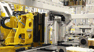 對(duì)應(yīng)工業(yè)流水線上,高精度機(jī)器人進(jìn)行電芯堆疊