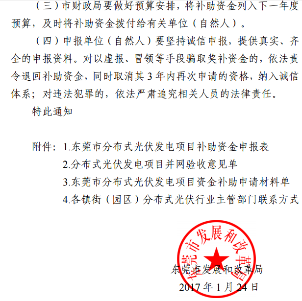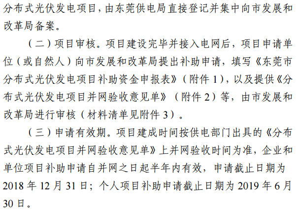 中國(guó)儲(chǔ)能網(wǎng)訊:7月6日,東莞發(fā)改委發(fā)布了《關(guān)于我市2017-2018年分布式光伏專(zhuān)項(xiàng)資金補(bǔ)助項(xiàng)目容量情況的通知》以及《關(guān)于組織申報(bào)2017-2018年?yáng)|莞市分布式光伏發(fā)電資金補(bǔ)助項(xiàng)目的通知》。根據(jù)通知,東莞市2017-2018年分布式光伏專(zhuān)項(xiàng)資金補(bǔ)助項(xiàng)目總?cè)萘繛?20MW,項(xiàng)目建成并網(wǎng)后按補(bǔ)助申請(qǐng)時(shí)間先到先得,而截止目前全市2017年1月1日至2018年6月30日已并網(wǎng)發(fā)電并提交補(bǔ)貼申請(qǐng)的分布式光伏項(xiàng)目容量約為108MW,余下的補(bǔ)助項(xiàng)目容量約為12MW。