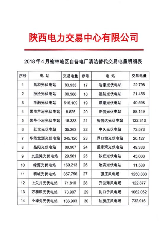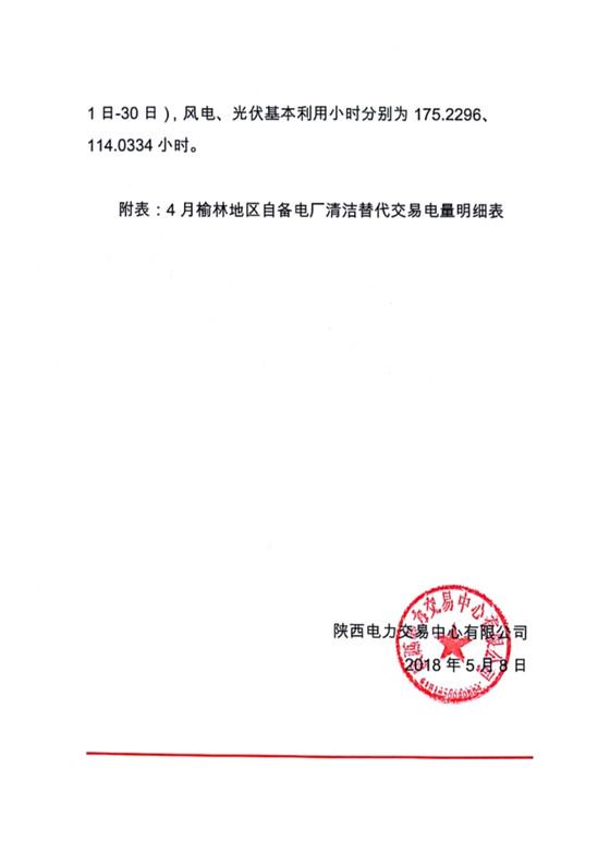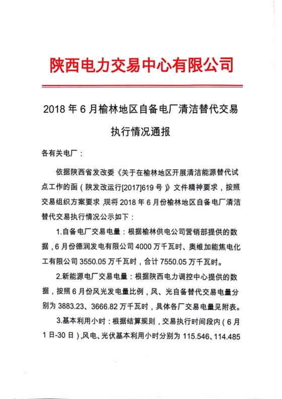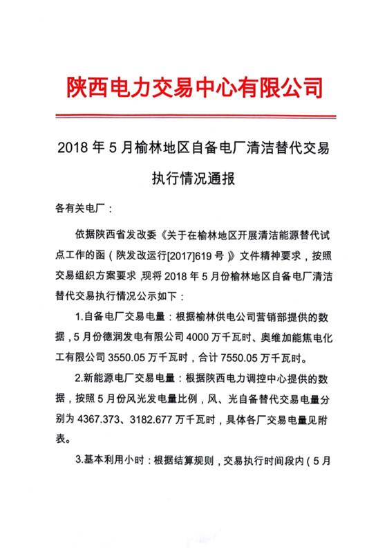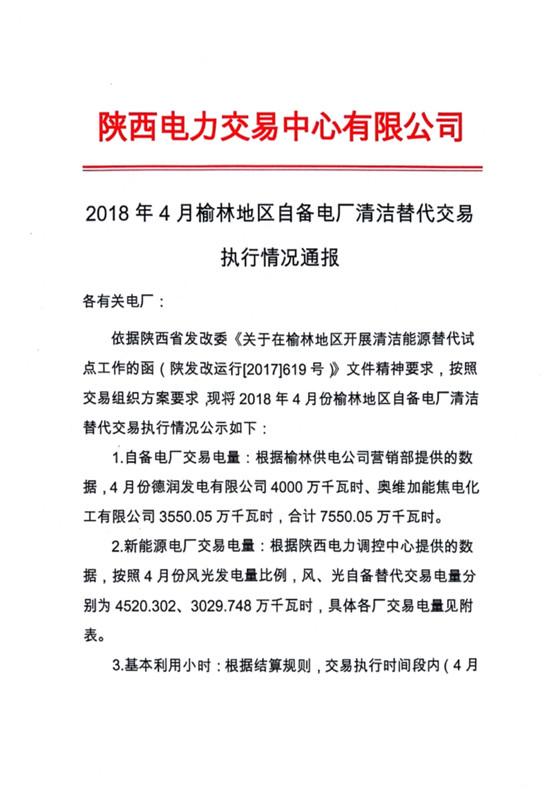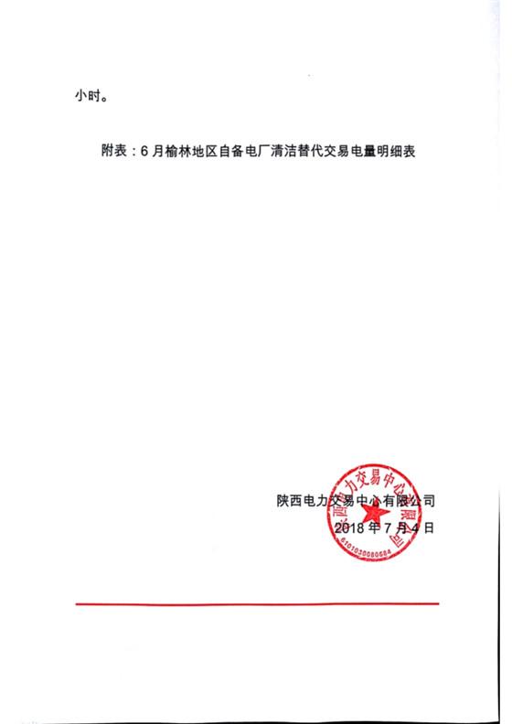 2018年4-6月榆林地區(qū)自備電廠清潔替代 交易執(zhí)行情況通報