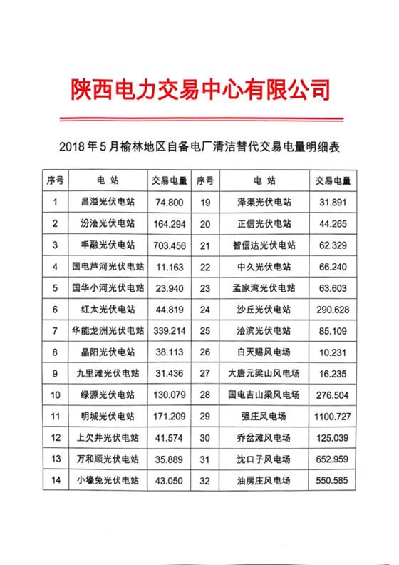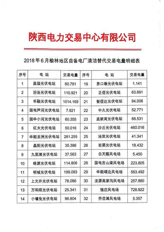依據(jù)陜西省發(fā)改委《關(guān)于在榆林地區(qū)開展清潔能源替代試點工作的函(陜發(fā)改運(yùn)行[2017]619號)》文件精神要求,按照交易組織方案要求,現(xiàn)將2018年4-6月份榆林地區(qū)自備電廠清潔替代交易執(zhí)行情況公示如下,詳見附件。