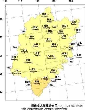福建省太陽(yáng)能資源從地域分布來(lái)看,從北向南逐漸增加。各市的太陽(yáng)能資源概況見(jiàn)下表。