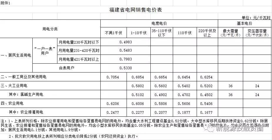 根據(jù)福建省物價(jià)局2018年6月15日發(fā)布的《福建省物價(jià)局關(guān)于電力行業(yè)增值稅稅率調(diào)整相應(yīng)降低一般工商業(yè)電價(jià)有關(guān)事項(xiàng)的通知》(閩價(jià)商〔2018〕115號(hào)),根據(jù)《國(guó)家發(fā)展改革委關(guān)于電力行業(yè)增值稅稅率調(diào)整相應(yīng)降低一般工商業(yè)電價(jià)的通知》(發(fā)改價(jià)格〔2018〕732號(hào)),經(jīng)省政府領(lǐng)導(dǎo)同意,現(xiàn)就降低我省一般工商業(yè)電價(jià)有關(guān)事項(xiàng)通知如下:適當(dāng)降低我省一般工商業(yè)及其他用電目錄銷售電價(jià),適當(dāng)降低我省一般工商業(yè)及其他用電輸配電價(jià),調(diào)整后價(jià)格如下,從2018年5月1日起執(zhí)行。