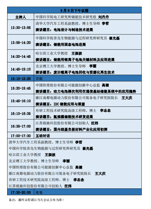 第二屆儲能電池技術發(fā)展方向研討會主要議程