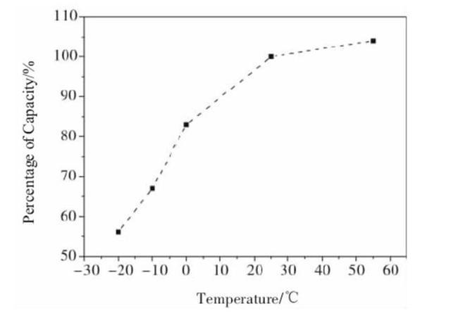 20Ah磷酸鐵鋰電池不同溫度下的放電容量