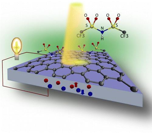 石墨烯為基礎(chǔ)的肖特基結(jié)太陽能電池在過去也演示過,這里,研究人員邁出了新的一步,摻雜石墨烯時采用有機化學品三氟甲磺酸(TFSA:trifloromethanesulfonic acid),他們使用了簡單的旋涂法(spin-casting method)。
